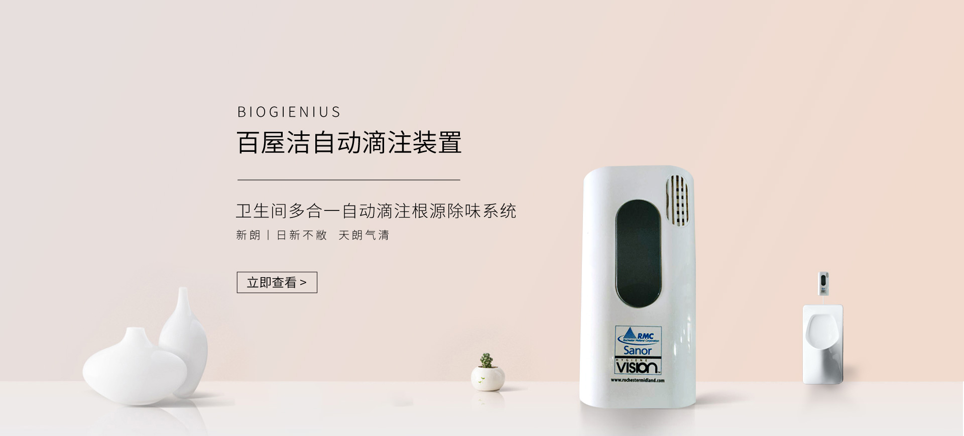 新朗環境自2015年起與美國具百年歷史的跨國企業RMC(Rochester Midland Corporation)合作, 進口 RMC用于機械制造、交通運輸、航天航空、石油化工、食品禽肉乳制品加工等工業生產制造行業的專業清洗、滅菌系列產品,以及酒店、CBD大廈、學校(包括幼稚園)、醫療機構、百貨商場、養殖業、餐飲業等商用行業清潔、消毒系列產品,還有專用于各個行業單位“廁所革命”的公共衛生間根源除味第5代SANOR?衛生間自動滴管系統、第6代百屋潔SIOGIENIUS?電子控制衛生間自動滴注系統等系列產品項目。